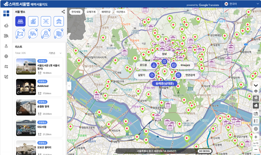This is a smart map service using the official Seoul city tourism map that lets you view themed attractions, transportation information, and convenience facilities all at a glance. Available in multiple languages, it is convenient for foreign tourists to use